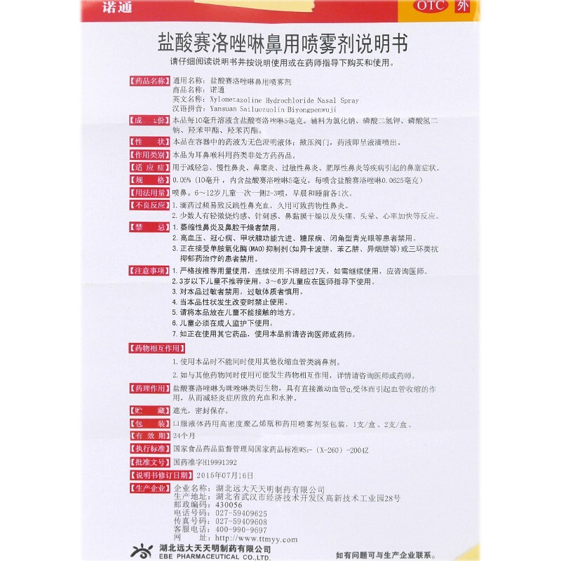 Spray for nasal hydrochloric acid silozoline nasal spray
