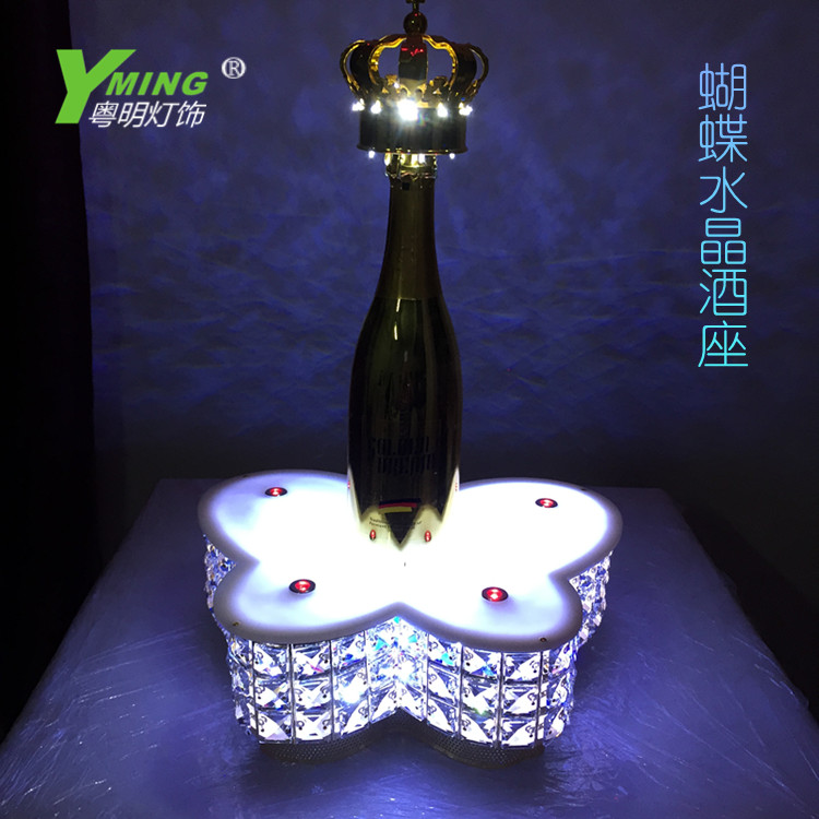 Cantonese Bright LED Charging Luminous Wine Base High-end Ocean Wine Laser Display Seat Crystal Fashion Bar Champagne Stand