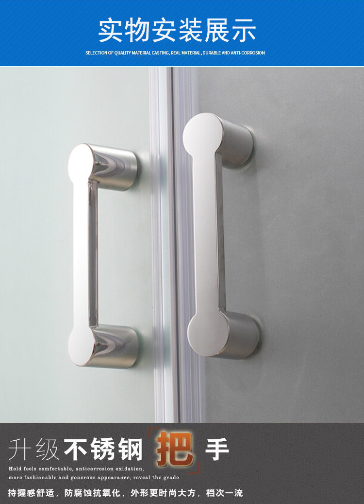 Thickened 304 stainless steel square pipe shower room handle bathroom tempered glass door square handle hole distance 300mm