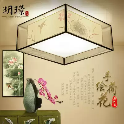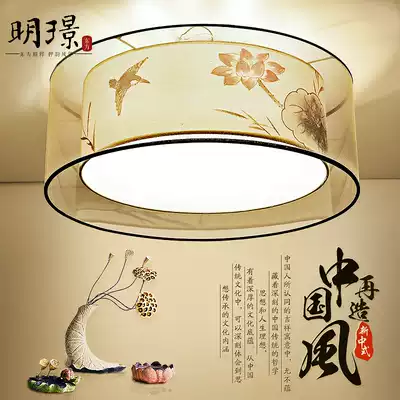 Modern new Chinese ceiling lamp round LED lotus flower hand-painted warm fabric living room dining room bedroom lamps and lanterns