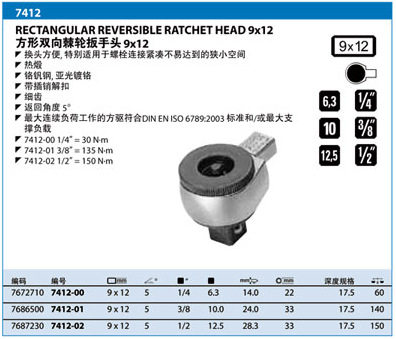 Gedore gidori square two-way ratchet wrench head 7412-02 (7687230) spot