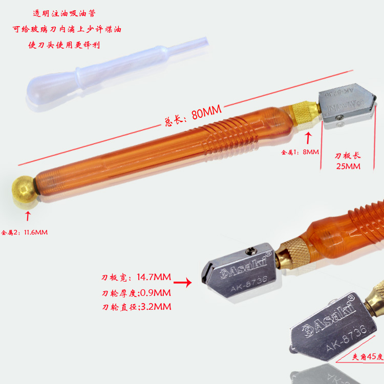 High-end roller style glass knife import knife 2-15mm thick glass tool diamond cutting knife tile knife