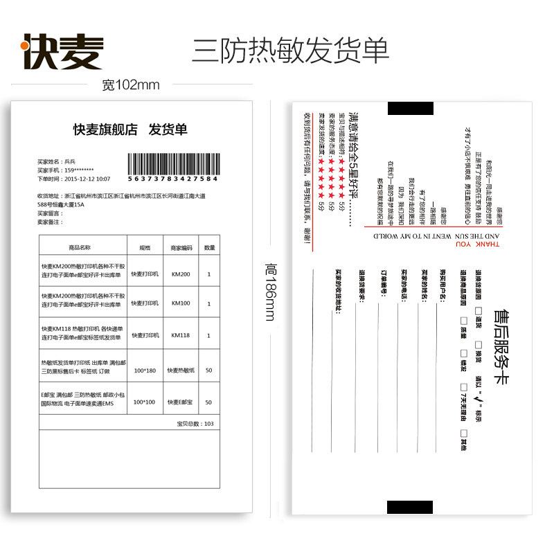 Hot Sensitive Paper Shipping Single Photocopy Paper Electric Commercial Express Electronic Face Single Purchase List Out Of Library Delivery Slip 102 * 186