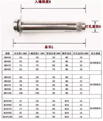Cross countersunk head expansion screw m6m8m10m12 extended 304 stainless steel implosion expansion screw