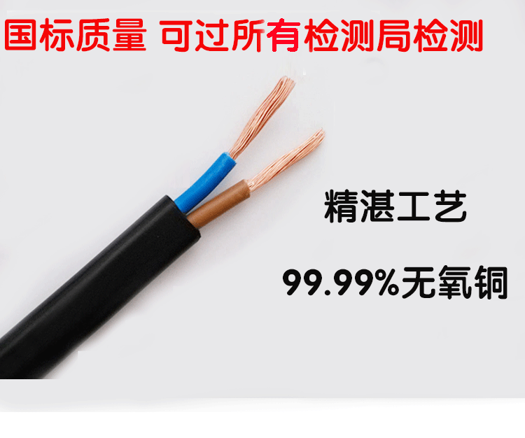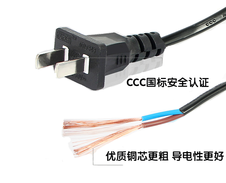 Two-core power cord with plug two holes pure copper 0 5 square 1 5 3 meters power cable plug line 2 core