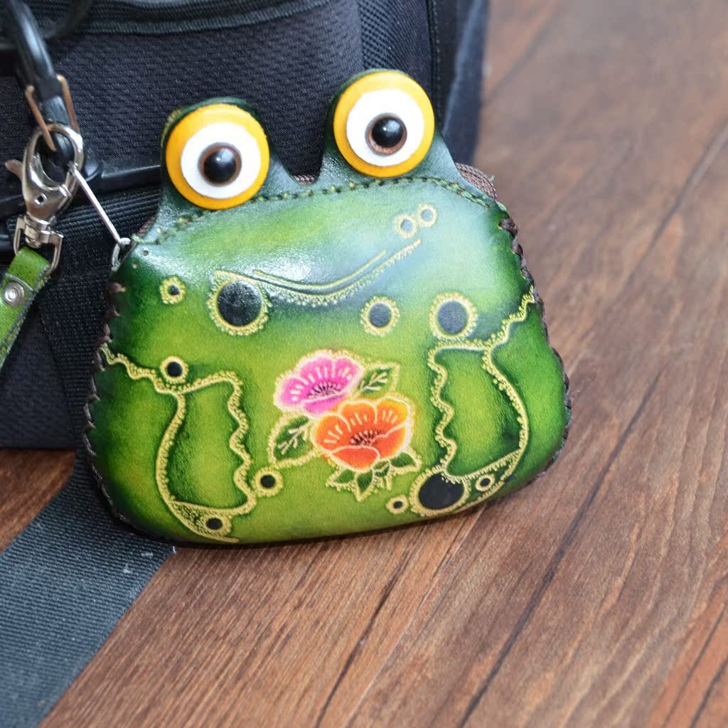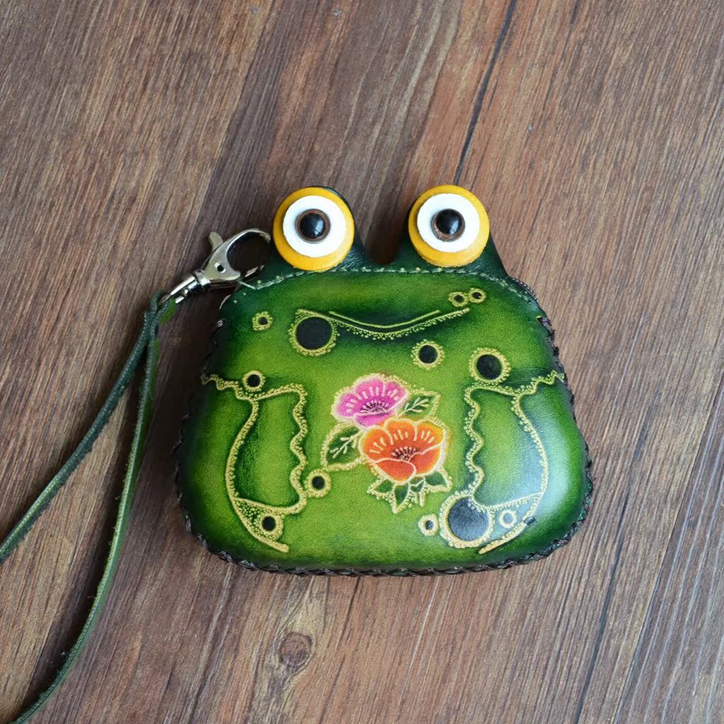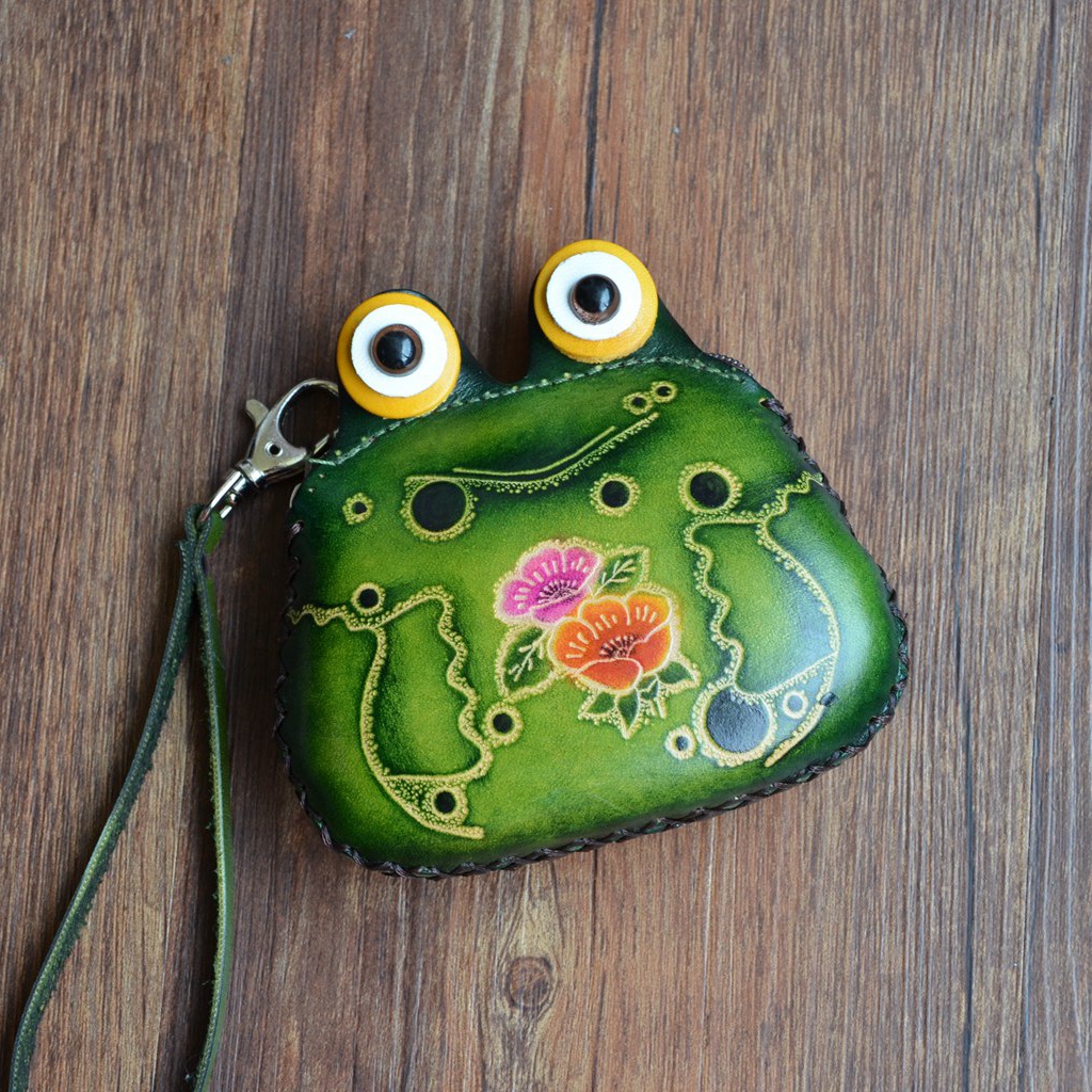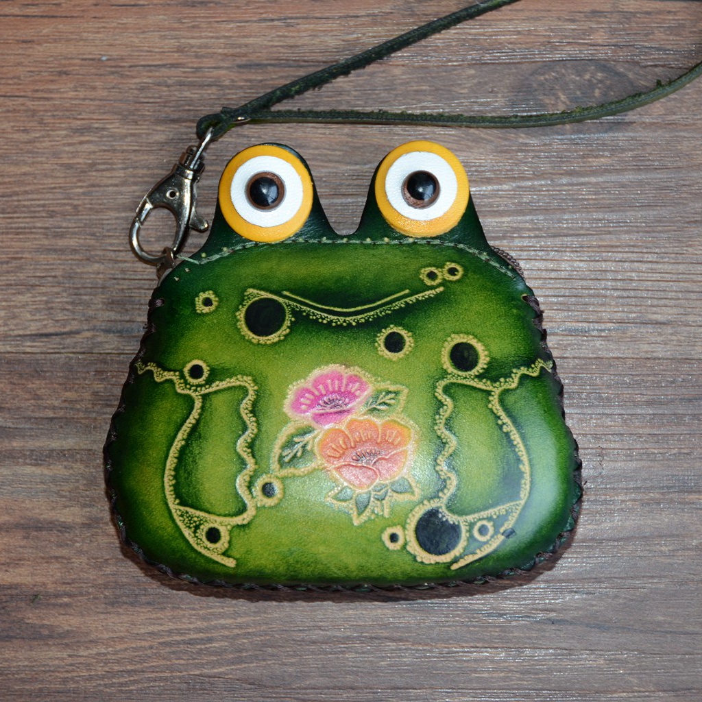 New creative gift handmade leather small wallet short cute coin purse frog leather zipper key bag