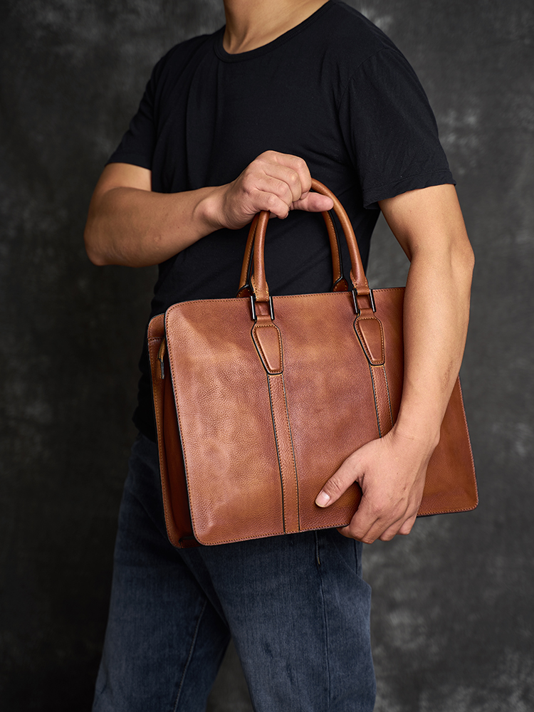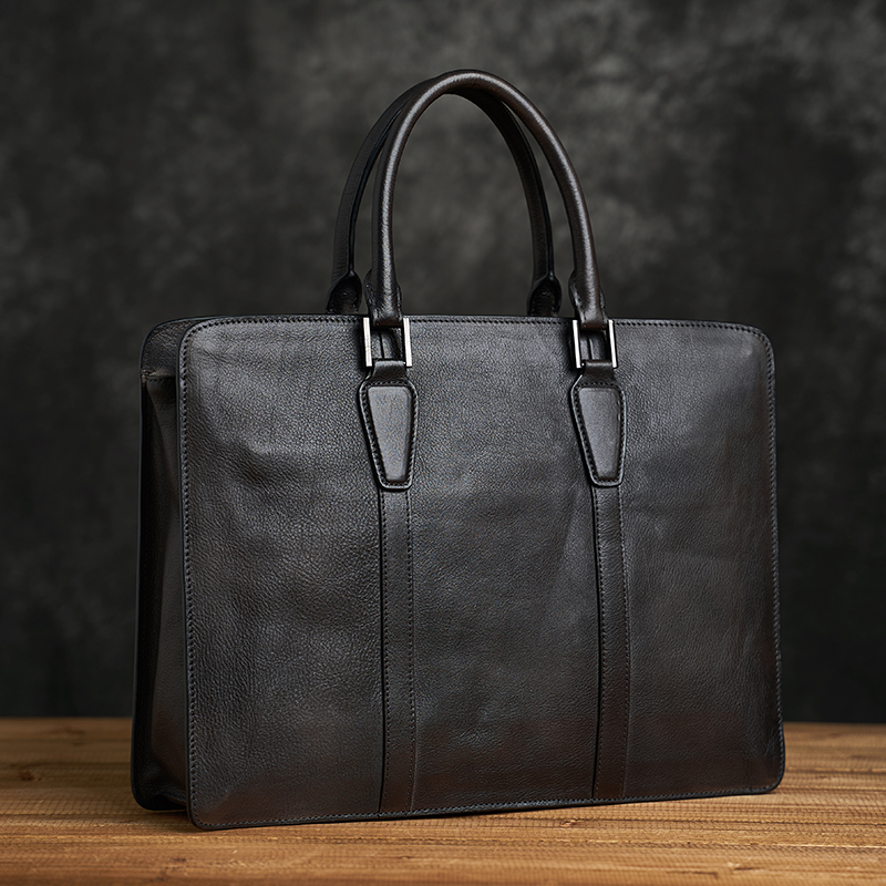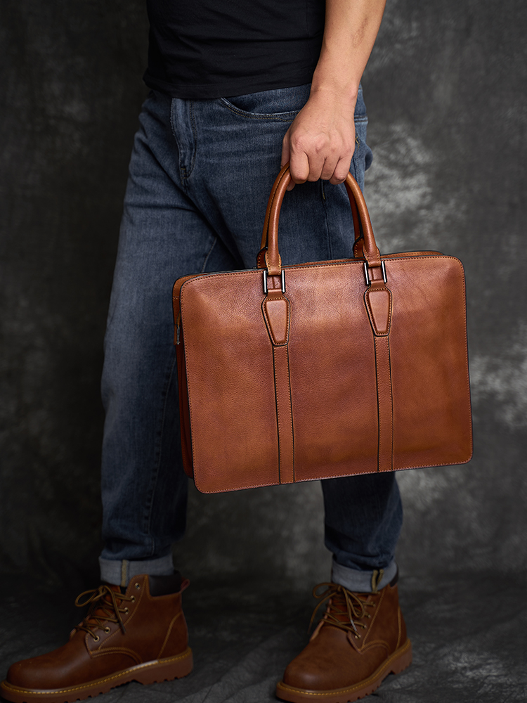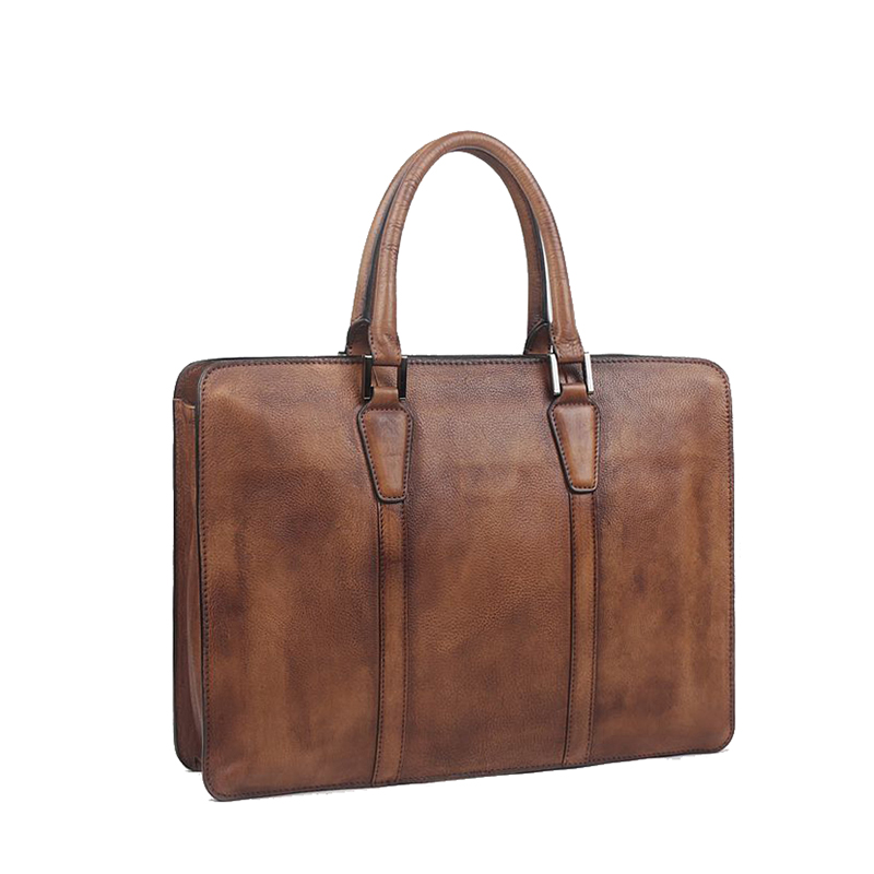 Retro brief Men's briefcase casual business headlayer Bull Leather Handbag single shoulder inclined satchel bag genuine leather computer bag