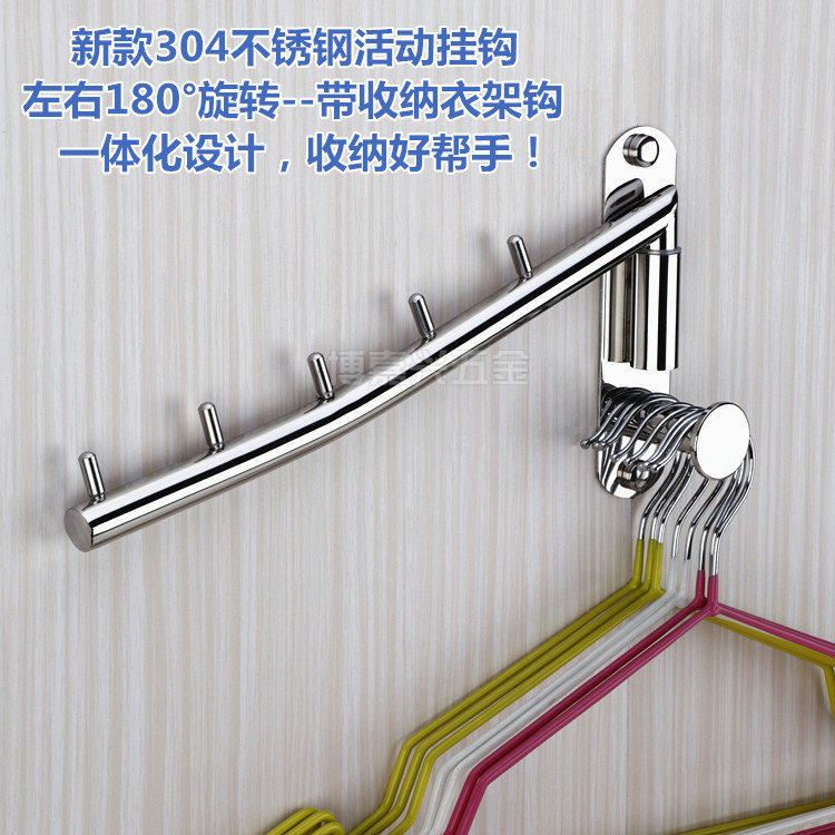 304 Stainless Steel Folding Hanger Left Right Active Swivel Hook Wardrobe Hotel Hook can be folded and hung up pendant