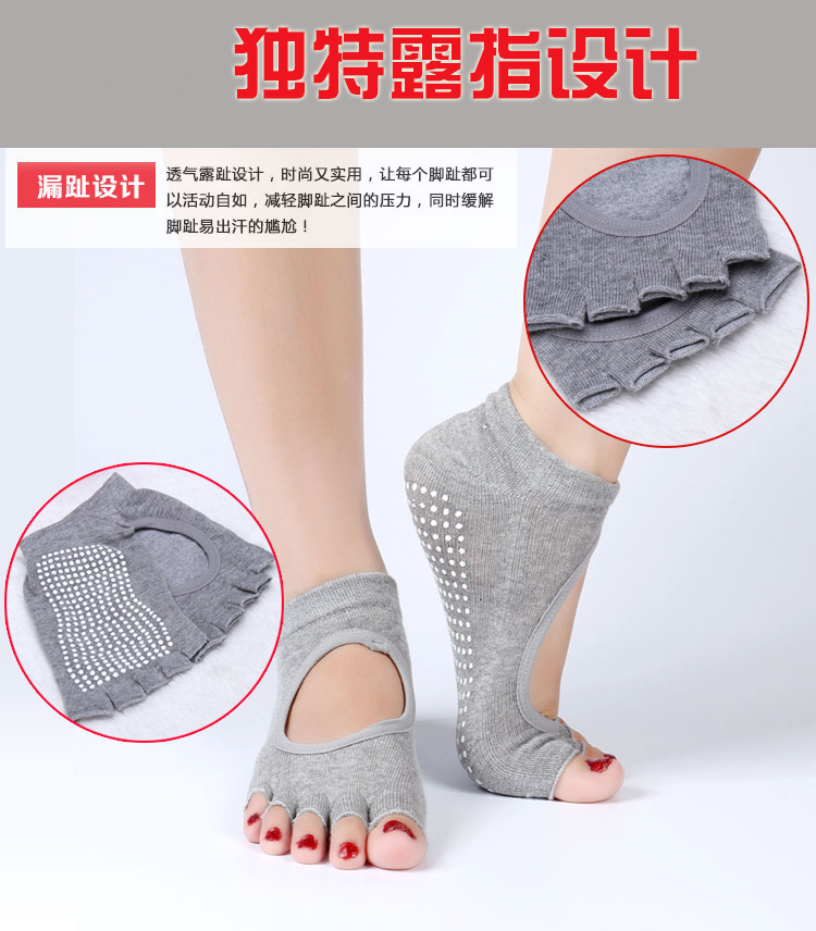 Professional silicone particles non-slip women's non-slip open toe socks and gloves four seasons can be used five-toed backless yoga socks