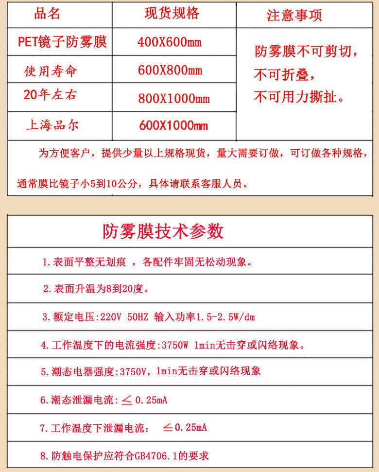 PET mirror anti-fog film Heating film Bathroom mirror anti-fog film Electric heating film Toilet bathroom mirror defogging film