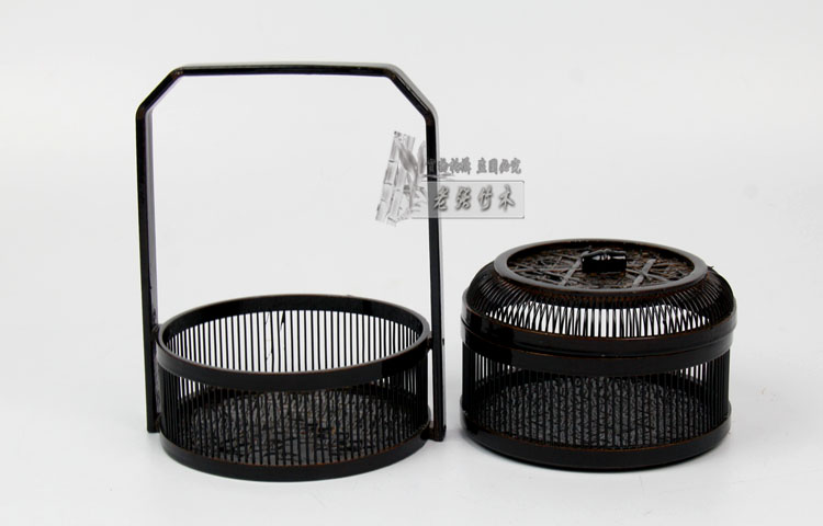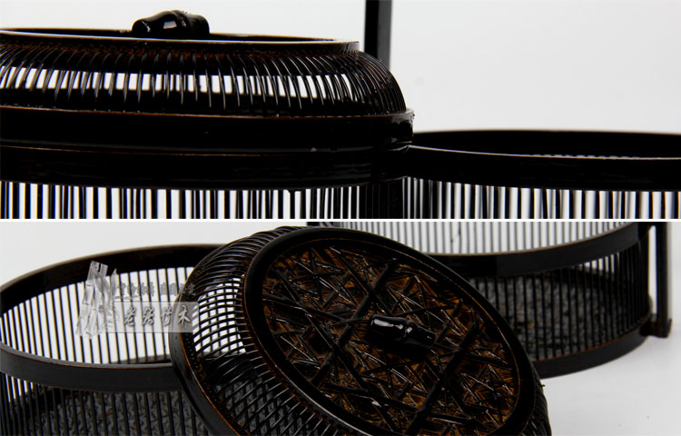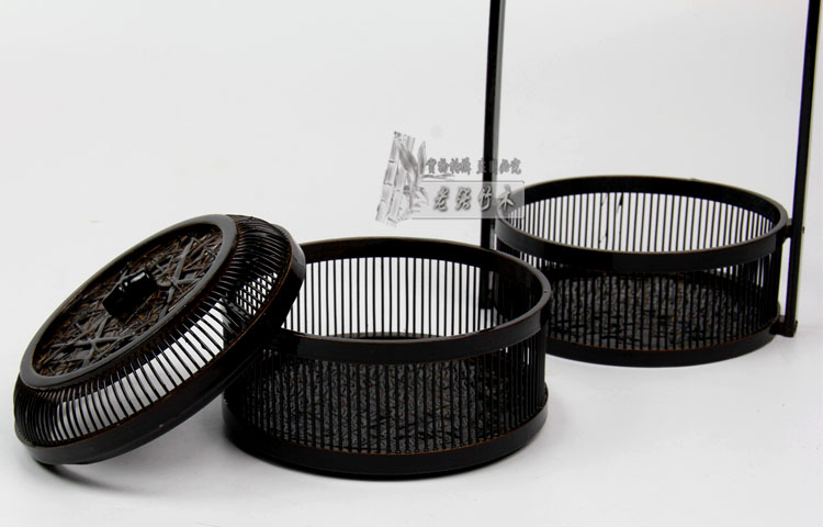 Retro Day Style Double Layer Tea Road Lift Basket Containing basket Bamboo Crocheting Box Fruit Basket Pastry Dish Decorated with small lifting basket