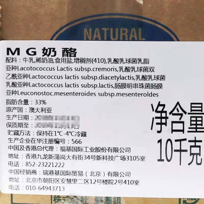 MG cream 10KG cheese cheese cheese with MG cheese 10kg boxes Australia into the milk cheese 10 kg cheese