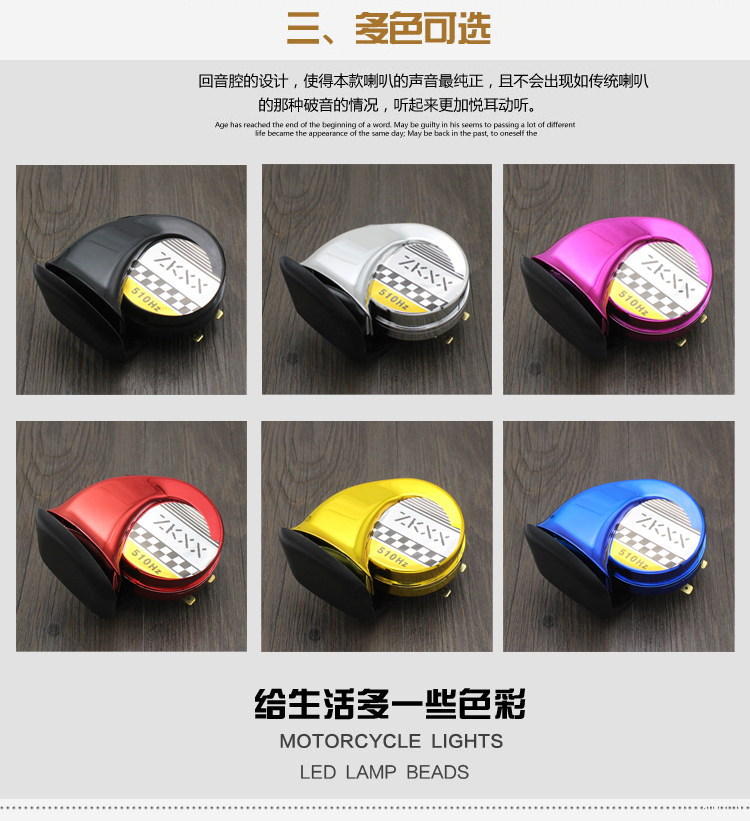 12V blue electroplated snail horn feeding horn line 12V red electroplated snail horn feeding horn line 12V silver white electroplated snail horn feeding horn line 12V black electroplated snail horn feeding horn line 12V golden yellow electroplated snail horn feeding horn line