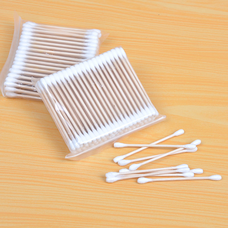 Advanced hygiene 100 cotton swabs Soft bag wooden stick double-headed cotton swab Environmental protection cotton cleaning bamboo stick Makeup remover makeup stick
