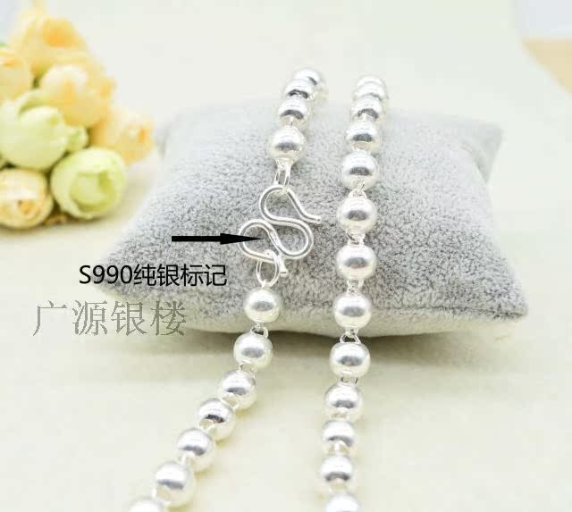 Round Pearl silver necklace 990 pure silver male and female lovers sweater chain day Korea 100 hitch national wind European and American long version