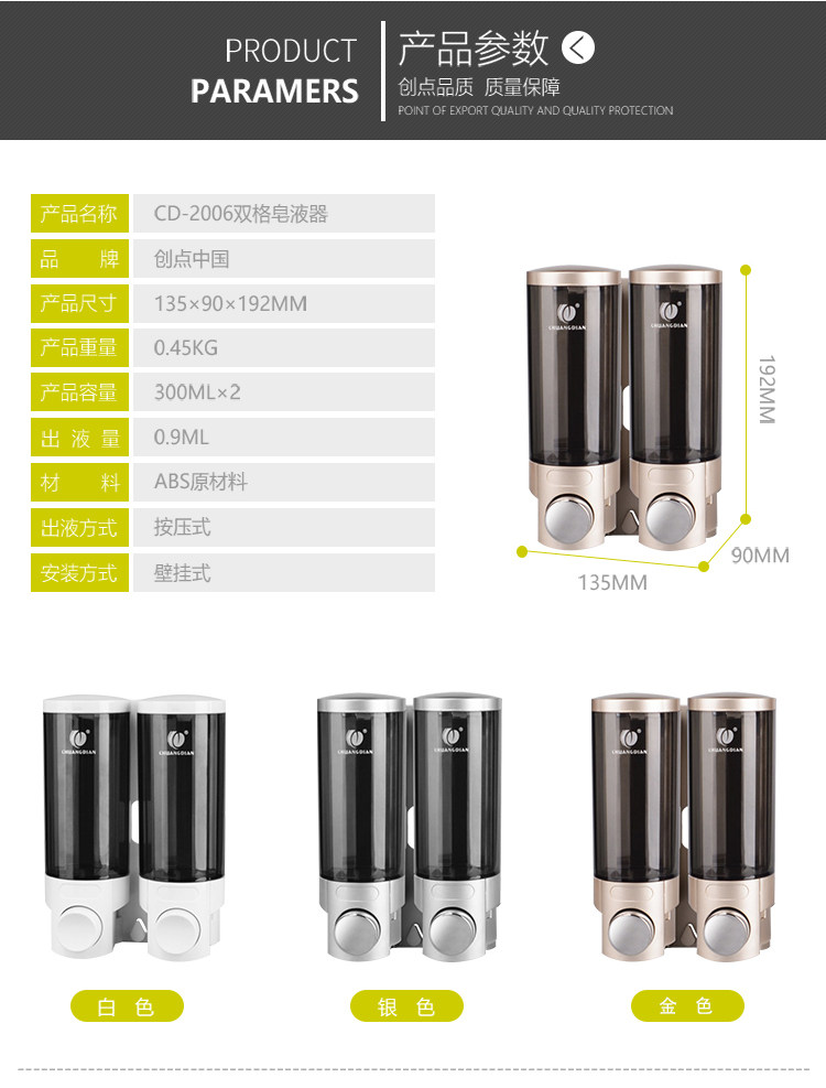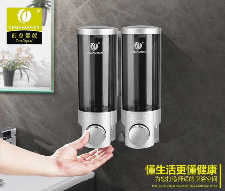 Chuangdian hotel wall-mounted liquid dispenser Powder room Manual double-head liquid dispenser toilet kitchen liquid dispenser bottle
