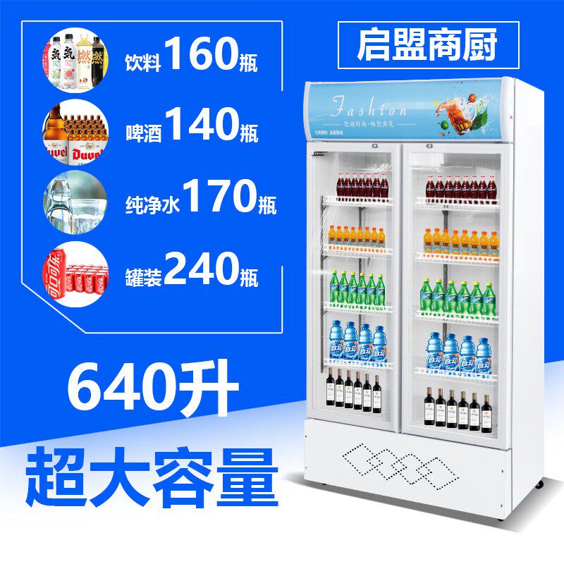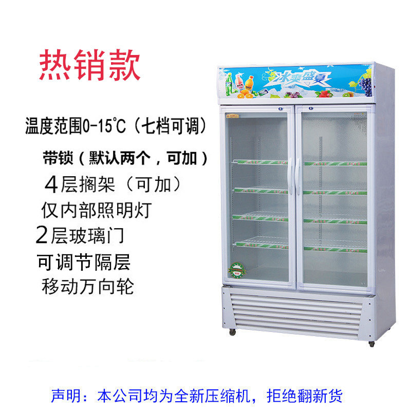 Double-door glass fresh-keeping cabinet beverage refrigerator beer cabinet display cabinet double zipper door vertical display freezer commercial