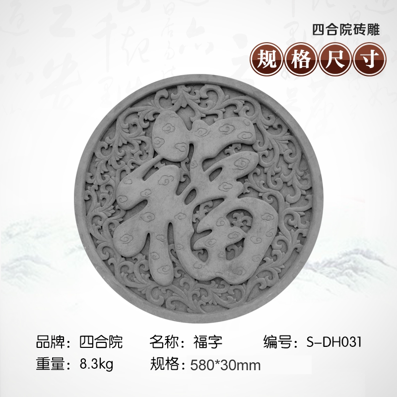 Ancient brick - carved background wall of ancient brick - carved brick 58cm Chinese - style funeral wall decoration fresco