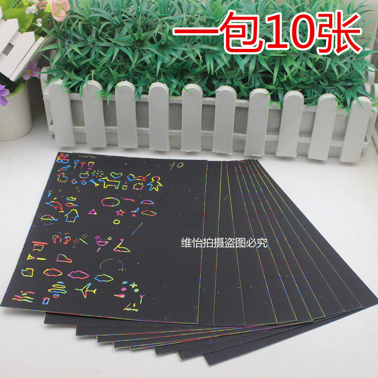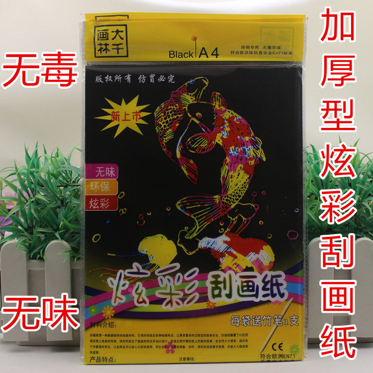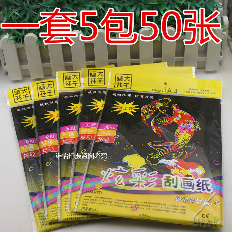 Dazzling Scraped paper A4 thickened 50 sheets of children Colour painting This scraped drawing paper is non-toxic and sends bamboo pen-Taobao