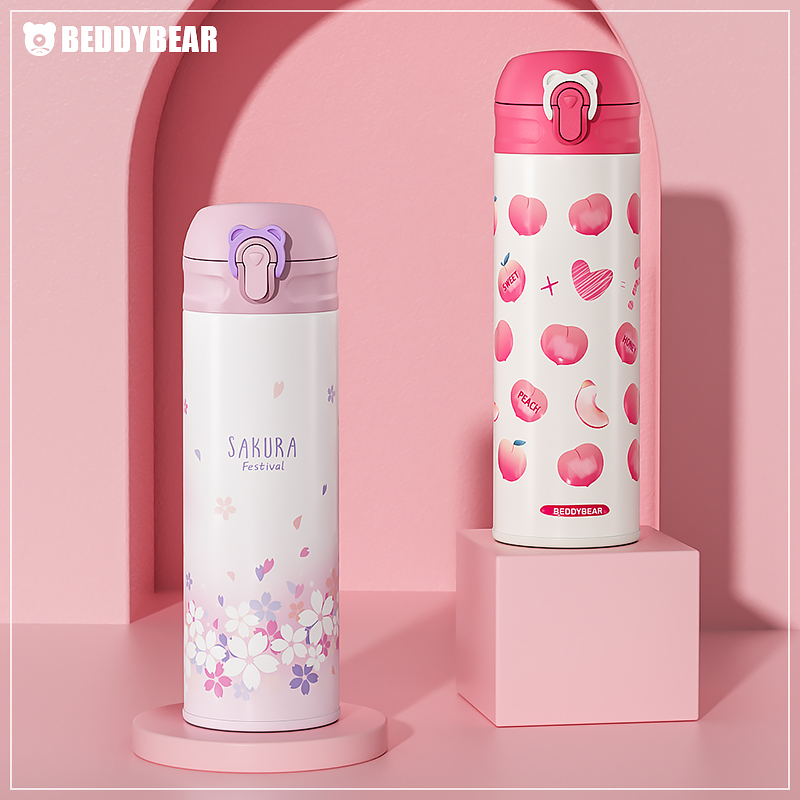 Cup Bear Adult Insulation Cup Lady Water Glass Bounce Straight Drinking Cup Men's Stainless Steel Lovers Cups Students Straw Cup-Taobao