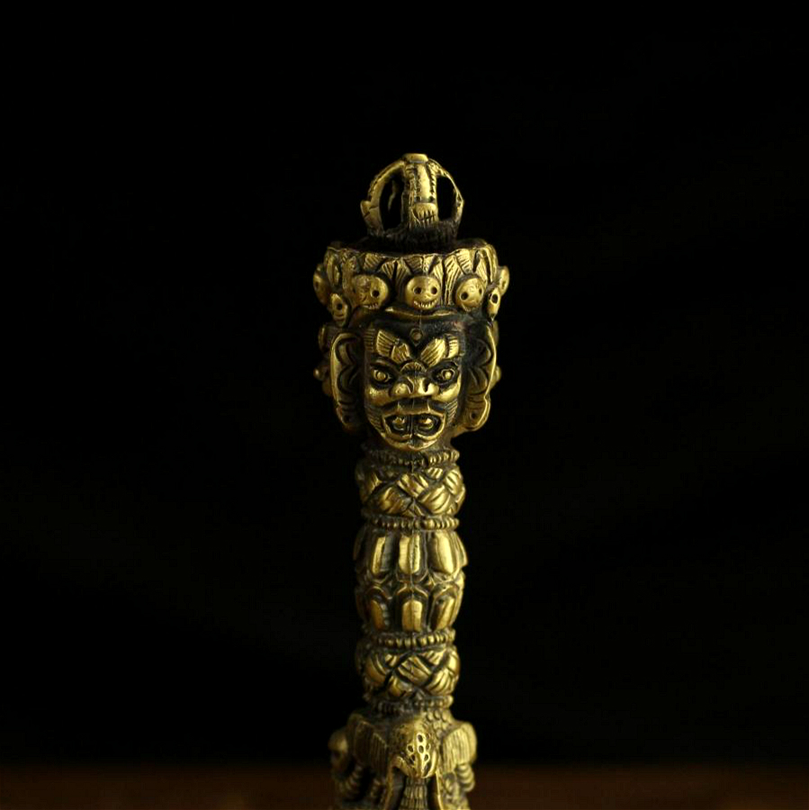 Tibetan Tantric Dharma Artifacts: Stained Vajra Pestle, Vajra Pestle, Bronze Pura Pestle, Bronze Large with Base