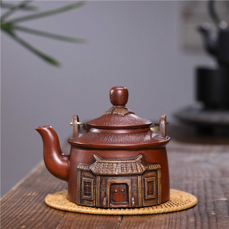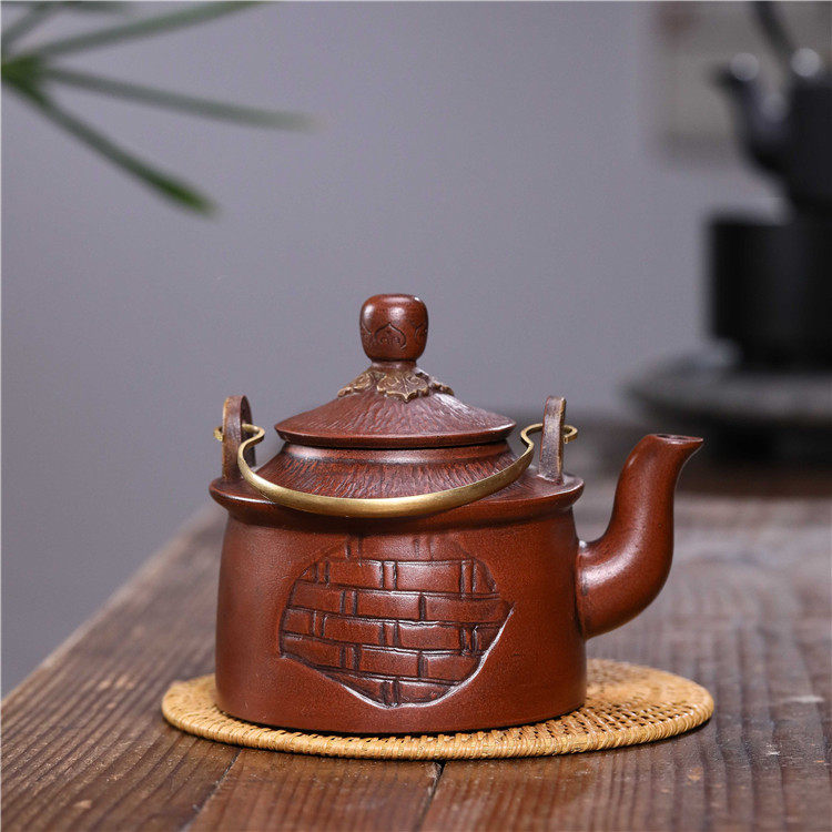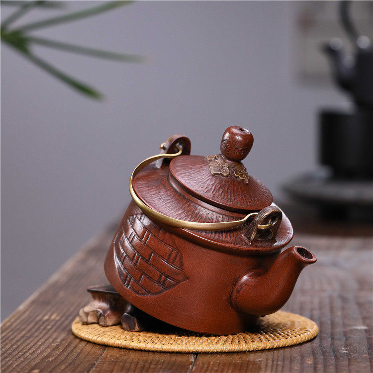 Authentic Yixing purple sand teapot famous pure handmade household large-capacity handle beam teapot imitation ancient purple sand genuine product