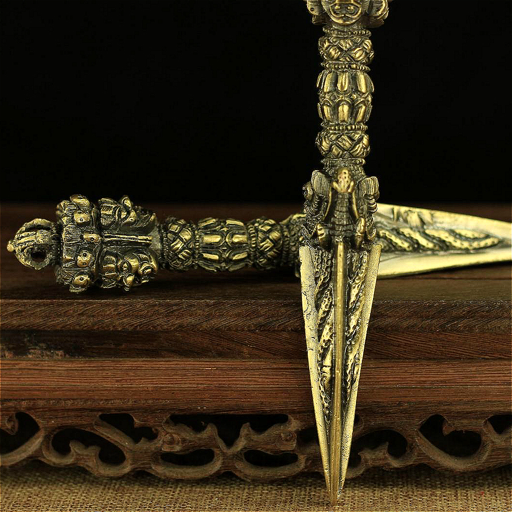 Buddhist Nepalese craft copper alloy Puba Vajrayogini three-sided Puba Vajra pestle descending demon Tuba height 17cm