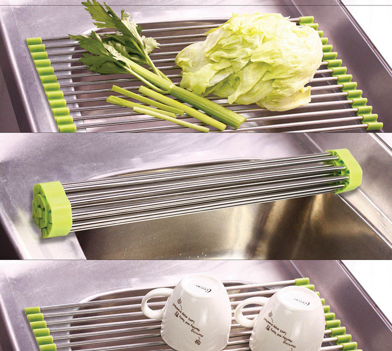 Folding drain Shelf Dish Rack Sink Upper containing layer Shelf Kitchen Dishwashing pool Drain Bowls Rack Drain basket
