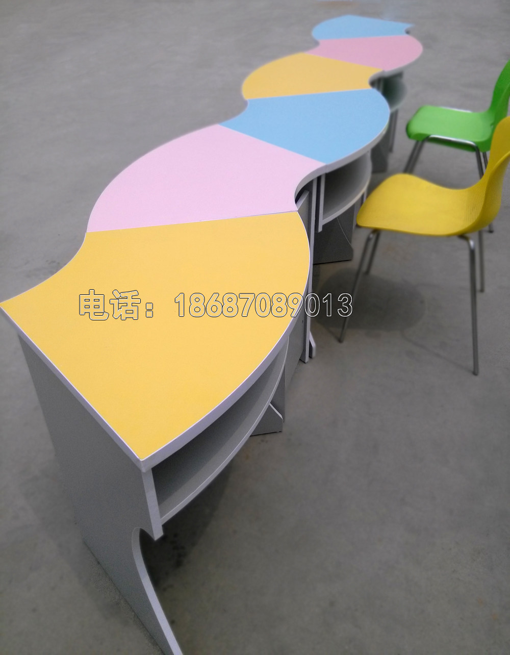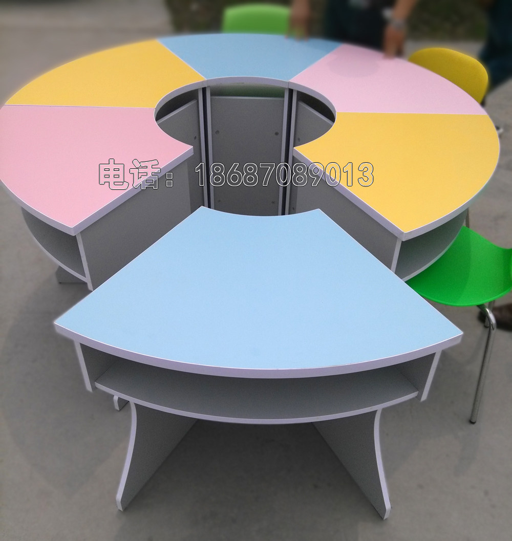 Color combination table Reading table Fan-shaped table Children's table Curved table semicircular table Library table and chair Training table and chair