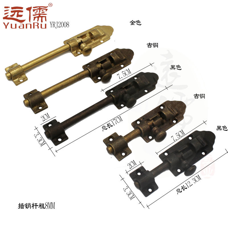Yuanru YRJ2008 Chinese antique door and window accessories classical brass bolt retro pure copper bolt copper door latch