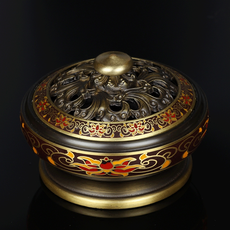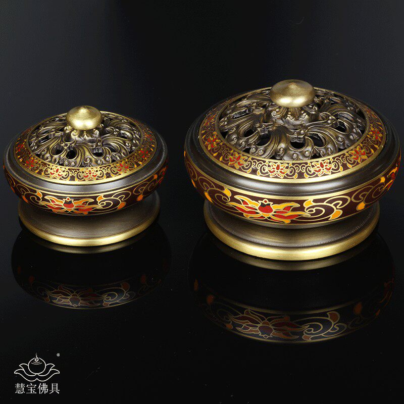 Ancient enamel color plate incense burner pure brass incense supplies round copper stove tea room living room for incense utensils incense supplies