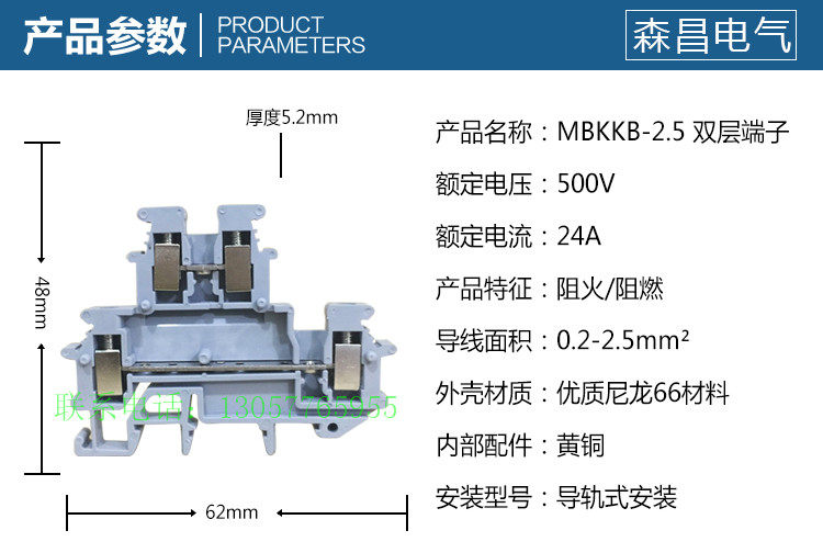 Factory direct sales Micro terminal MBKKB-2 5 2 5 square double-layer double connection wire terminal two in two out