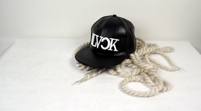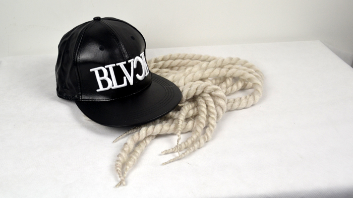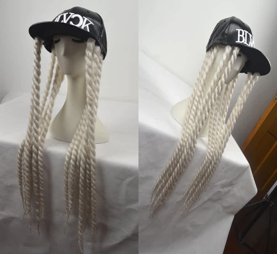 Black PU hat white braid with black PU hat