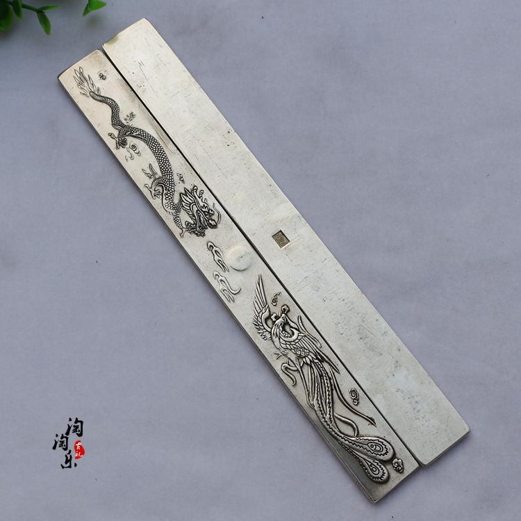 Longfeng colorful stainless steel antique iron town ruler Calligraphy calligraphy Paperweight paper pressure paper Metal white copper large town ruler