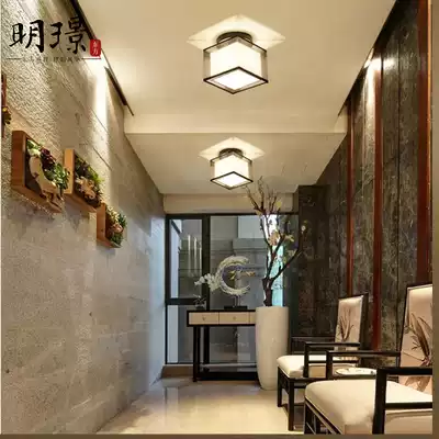 New Chinese aisle corridor lighting balcony porch Hall lighting simple fabric Round Square small ceiling light