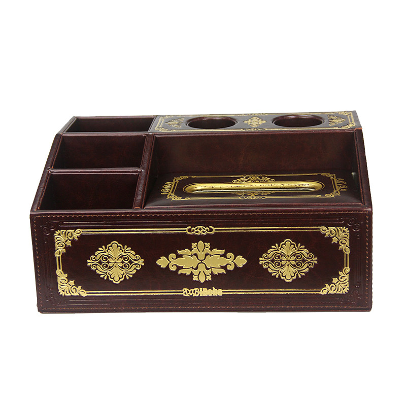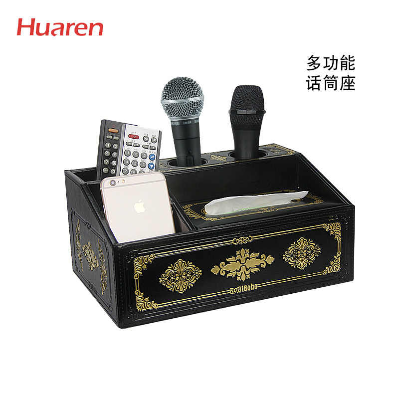 Huaren Multifunction Creative Paper Towel Containing Box Leather Desk Desktop Remote Control Microphone Box Living Room Home