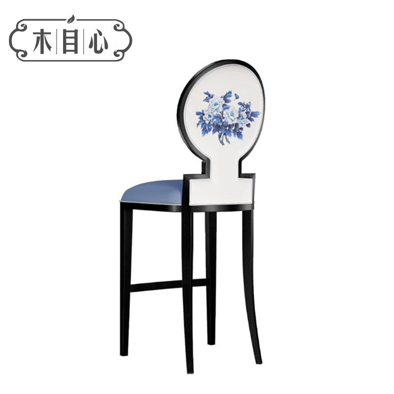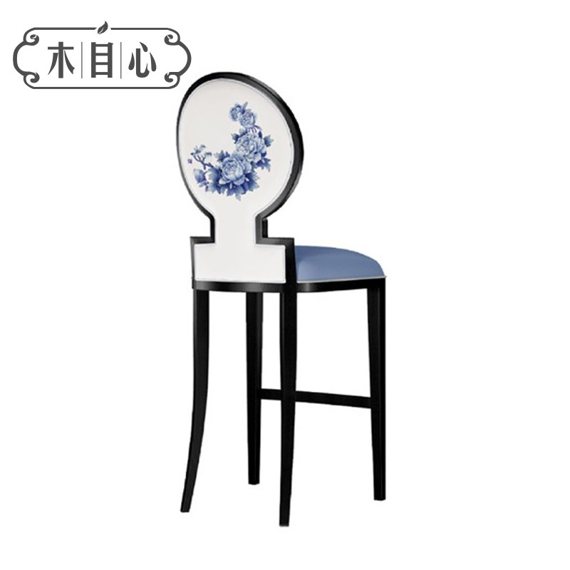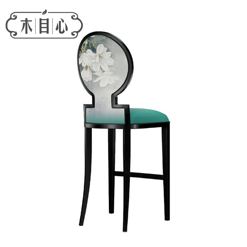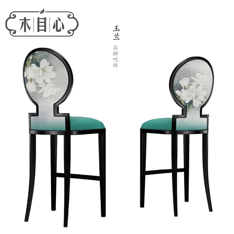 New Chinese Solid Wood Bar Chair Modern Hotel Front Desk High Footstool Bar Table Clubhouse Home Fabric Chair Furniture