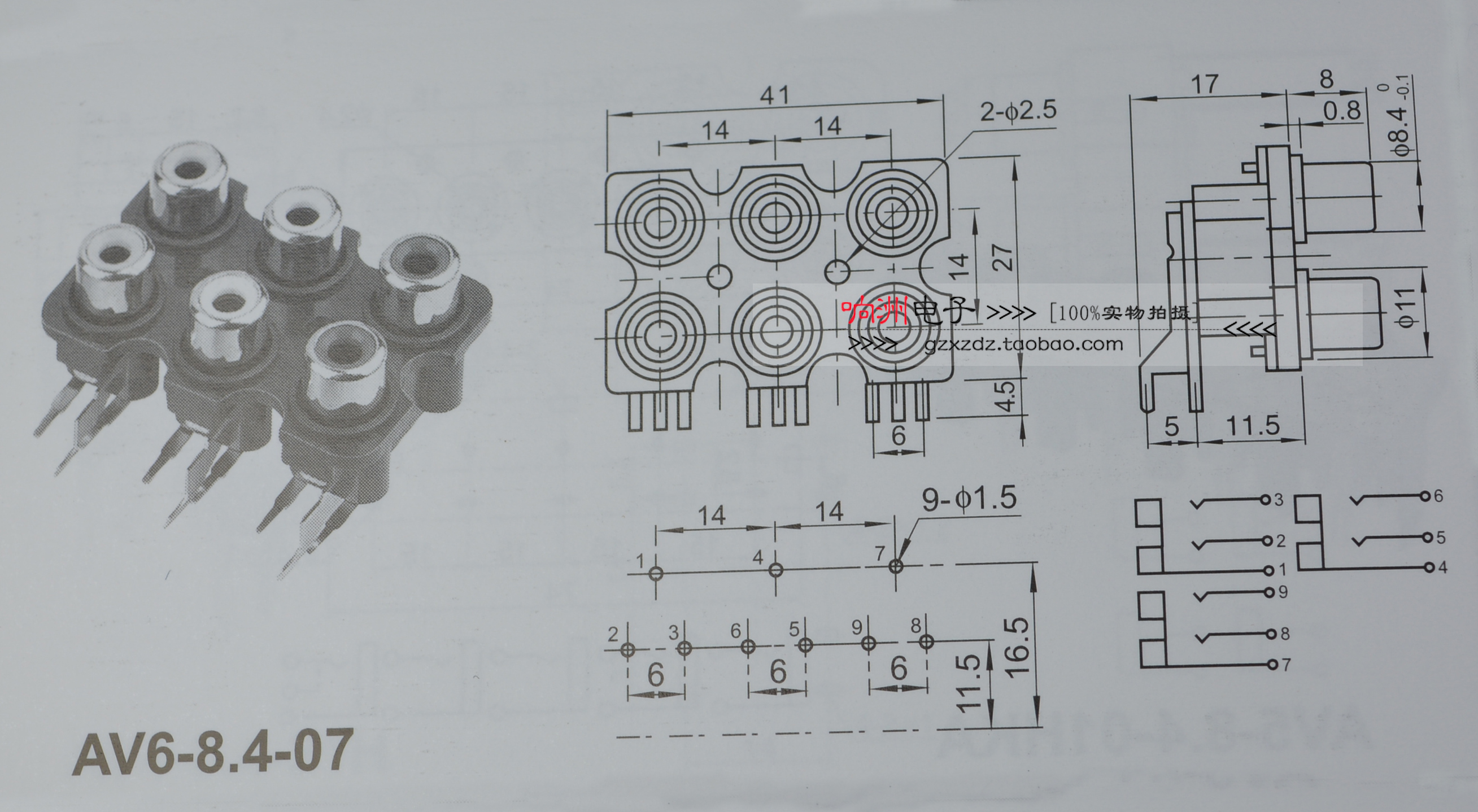 Lotus socket 6-bit lotus seat six-bit RCA audio AV seat bent foot 6-bit RCA seat RCA6-7