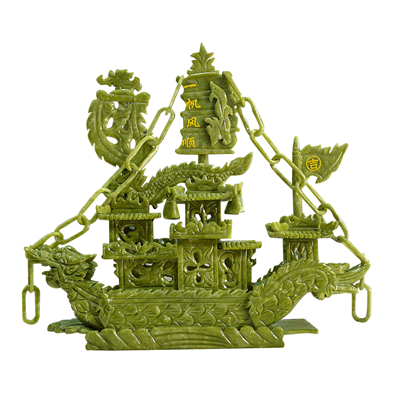 Natural jade 38cm Dragon boat One sail Smooth Jade Sculpture Jade Carving Craft Gift Pendulum Fancy Guan Guan Living Room Creative Pendulum