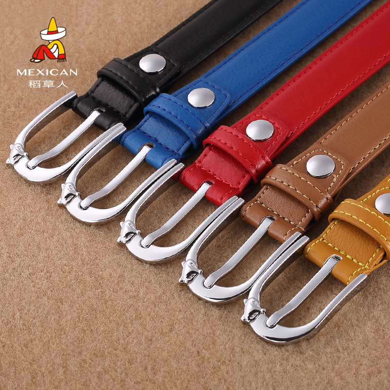 Rice Straw Man Lady Belt Needle Buttoned and Damp Belt Bull Leather Pants With Female Fashion Brief about 100 ride on the Korean version of the tide