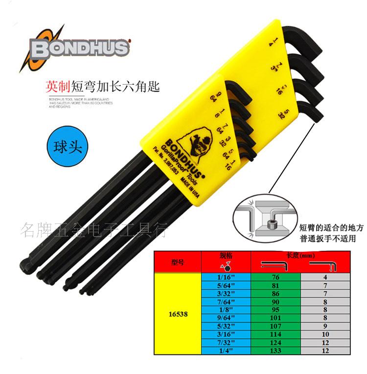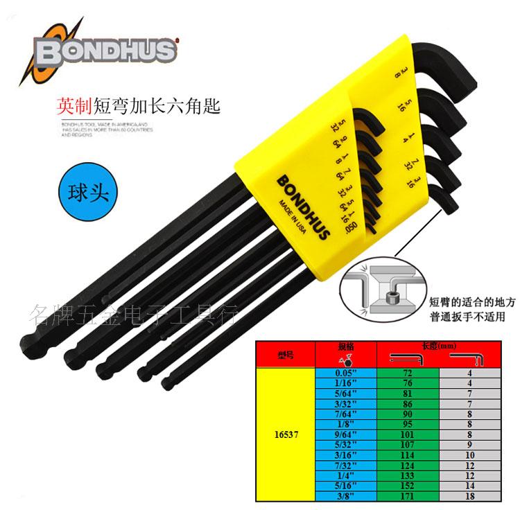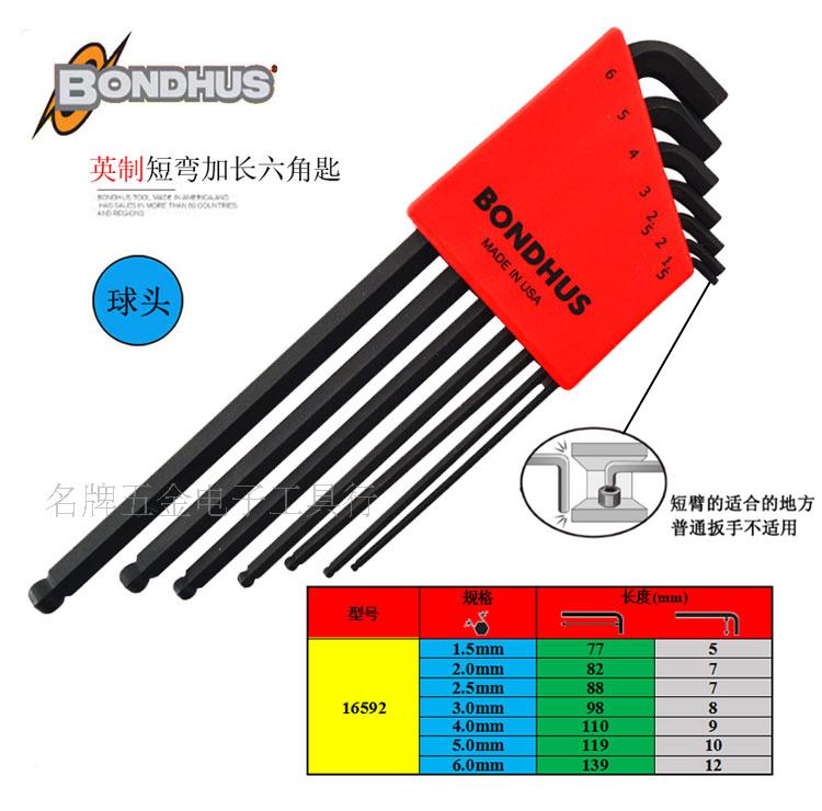 American BONDHUS Bolton 16599 16537 16538 16592 ball head set short body hex wrench