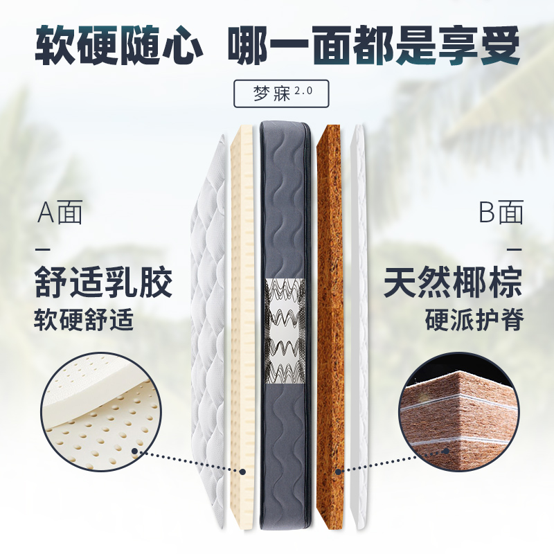 Yalan's top ten famous brand spring mattresses home latex soft pad coconut palm hard pad children Simmons thick dream