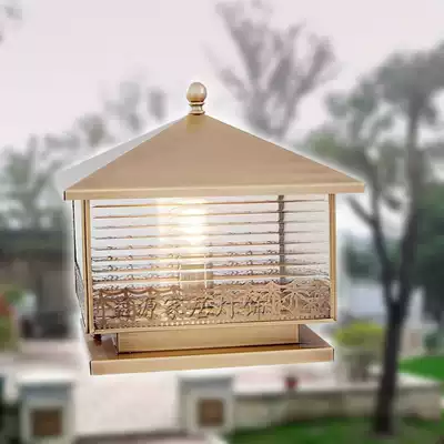 Yiyuan pure copper outdoor column head lamp Chinese all copper column lamp Wall villa lamp high quality gate solar energy