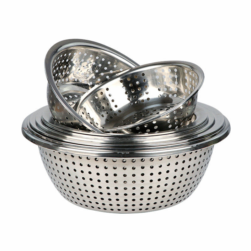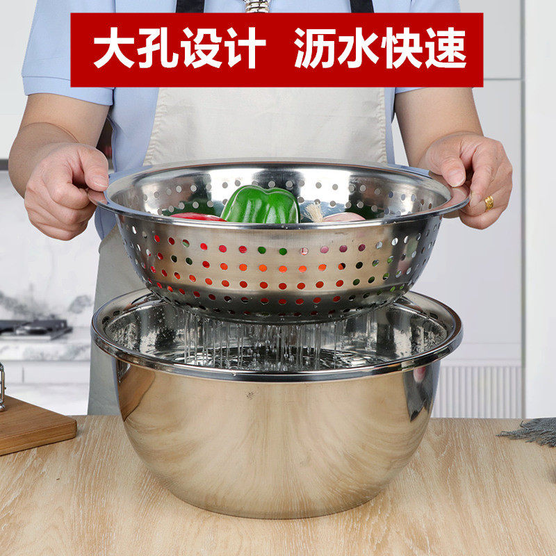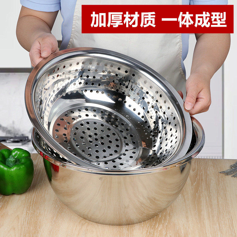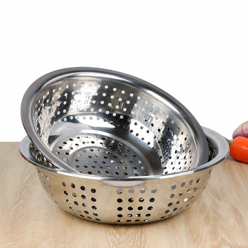Thickened Stainless Steel Large Eyes Drain Basin Macroporous Drain Basin Wash Vegetable Basket Wash Basin Control Water Basin Naughty Basket Commercial Large Basin