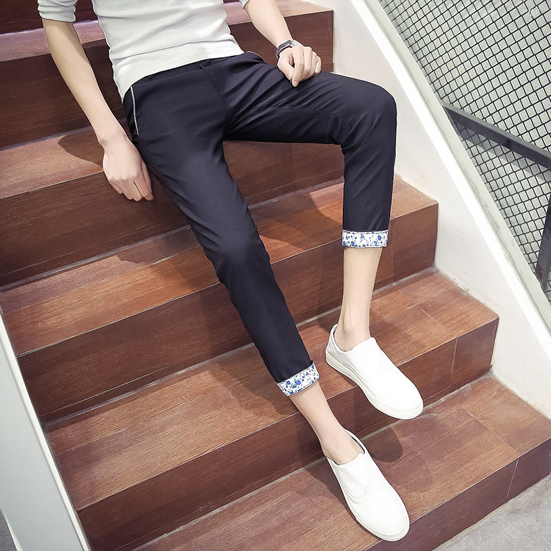 Summer British eight-point pants Men's nine-point casual pants Korean version of the student stretch slim 8-point shorts smoke pipe pants trend