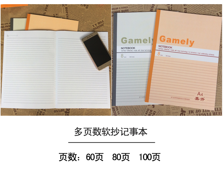 Office Notepad A4 soft copy notebook student homework writing book between classes 60 pages 80 pages 100 pages