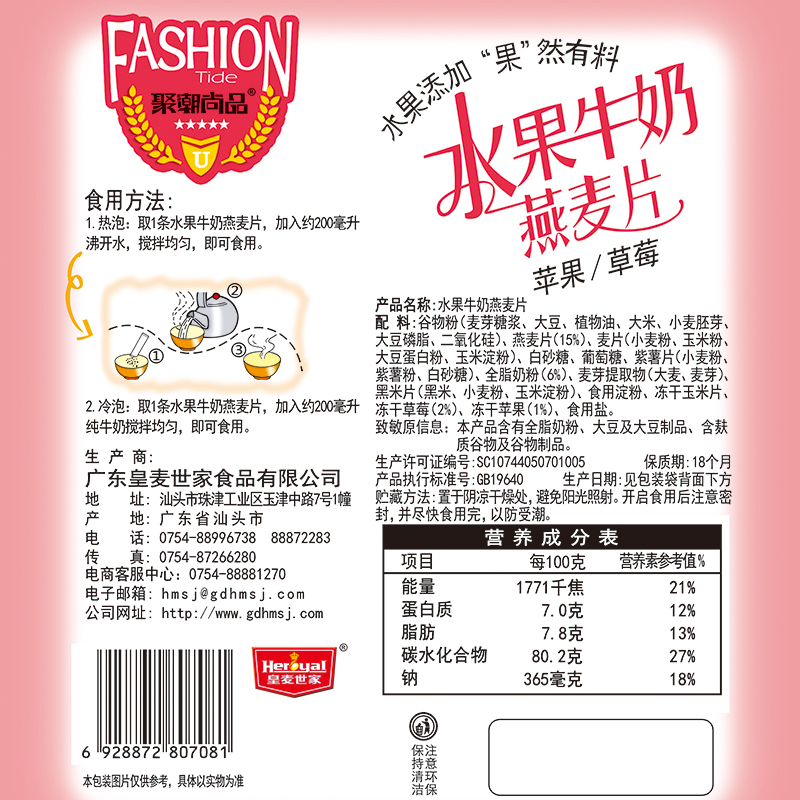 Royal wheat family cereal fruit milk oatmeal ready-to-eat nutrition small bag fast food breakfast porridge female brewing drink