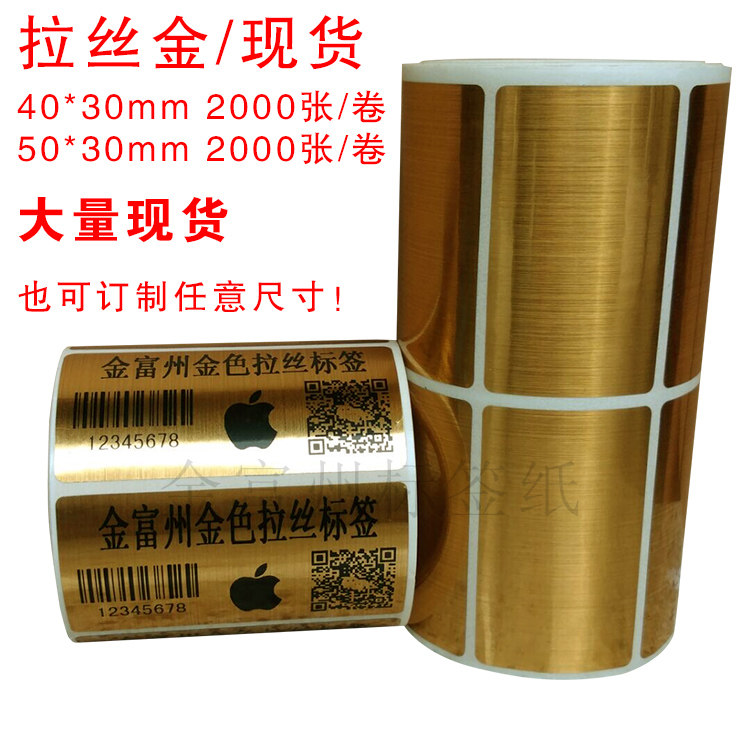 Wire drawn gold PET roll packaging wire drawn silver printing label paper custom printing paper gold waterproof PVC sticker