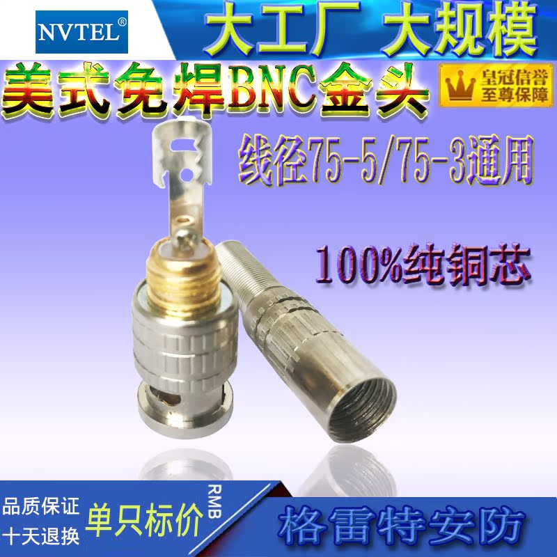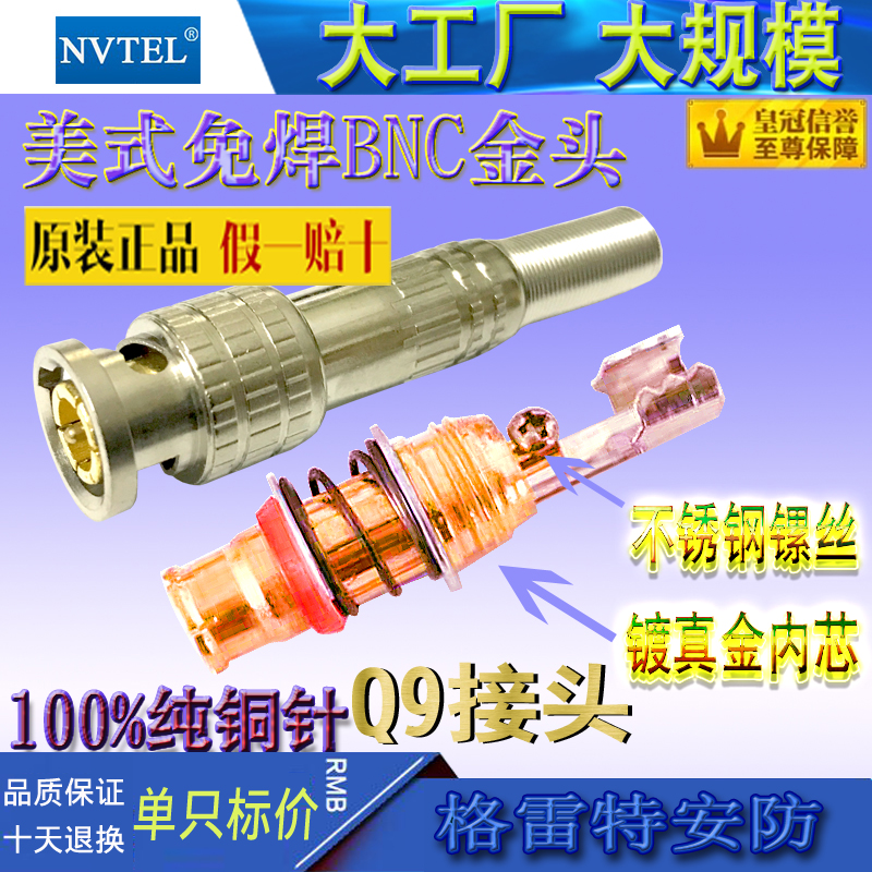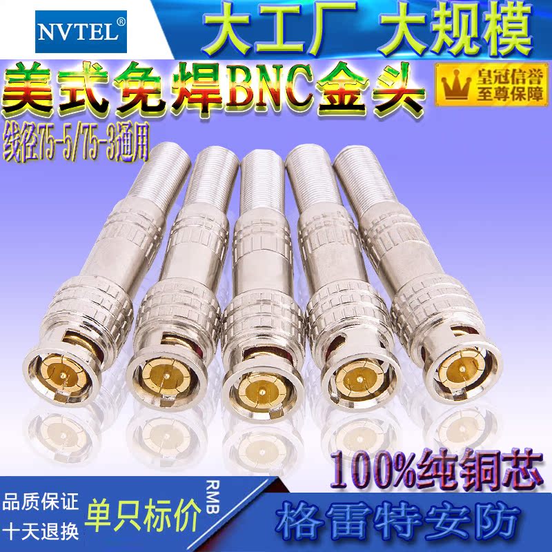 Monitoring pure copper American welding-free BNC gold head camera coaxial cable connector Q9 head bnc to coaxial transmission line
