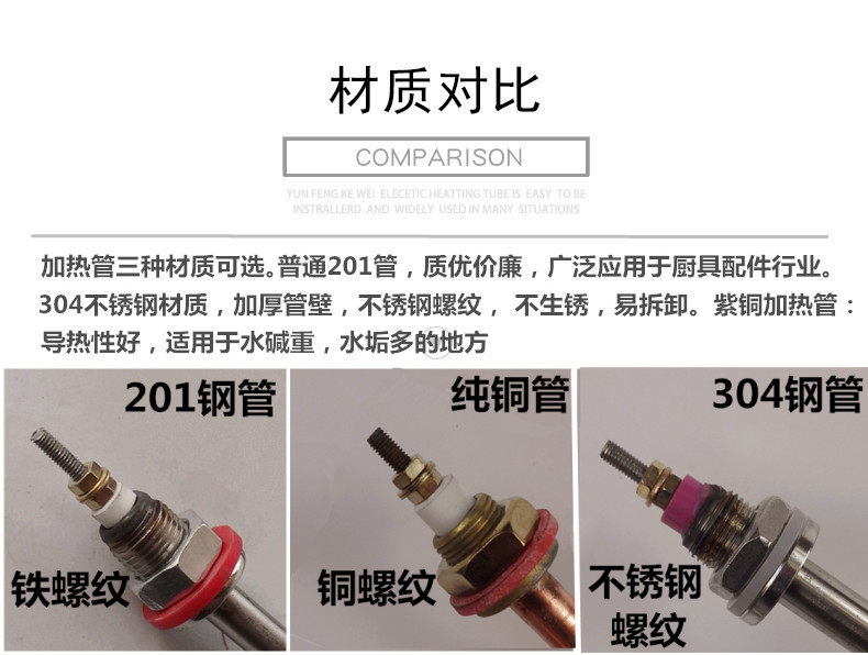 304 stainless steel U type insulated bench electric heat pipe 2KW 3KW 4KW copper steam rice machine heating pipe water tank heating pipe